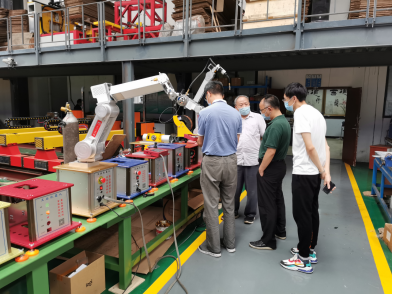 瞿祥华书记代表学院感谢武汉蓝讯科技在教学、科研等方面给予学院宝贵的支持。表示将切实推进学院与蓝讯科技合作,将整合学院的科研团队,促进学院教师结合企业实际需要,参与到蓝讯科技的实际项目中进行科学研究。指出后续希望可以将蓝讯科技作为新生入学教育及学生实践教育基地,对开阔学生视野、提高科研能力有很大帮助。在参观工业机器人产线时,瞿祥华书记也建议武汉蓝讯科技可申请教育部产教融合,衔接和推广职业培训,增加工业机器人的实际功能、趣味功能和虚拟现实功能,并提出学院教师参与蓝讯科技项目研发可实现共赢。李波副院长指出将切实推动学院教学实践环节改革,将学生的实习结合到企业的实际需要中,整合学院教师、学生共同成为工业机器人研发力量,并进一步表示学院教师在机器人协同、虚拟现实等方面的研究将助力武汉蓝讯科技品牌力量的提升。