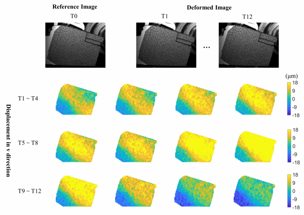 在数控机床等精密加工过程中,刀具的微小振动直接影响加工精度、表面质量与工具寿命。传统振动监测多依赖接触式传感器,存在安装复杂、成本高、易受噪声干扰等局限,难以实现全场、实时、微米级测量。为解决这一难题,研究团队创新性提出AT-DICNet框架,融合数字图像相关(DIC)技术与深度学习方法,通过高速工业相机实时采集刀具散斑图案,同步提取其多尺度变形特征,实现位移场端到端高精度预测。该框架的平均绝对误差仅为0.0221像素,均方根误差为0.0281像素;在真实车床切削实验中,对50um级位移的测量误差仅为1.18%,单帧图像处理时间约0.0093秒,为刀具磨损状态判断提供精准数据支撑。该系统无需接触工件,即可实现全场、可视化振动监测,为刀具状态研判、工艺优化与预警维护提供了可靠技术支撑,具有重要的工业应用价值与学术参考意义。